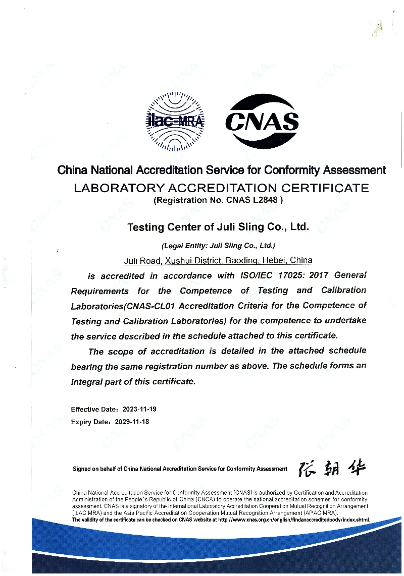 - CNAS Accredited Laboratory Certificate – Quality Testing