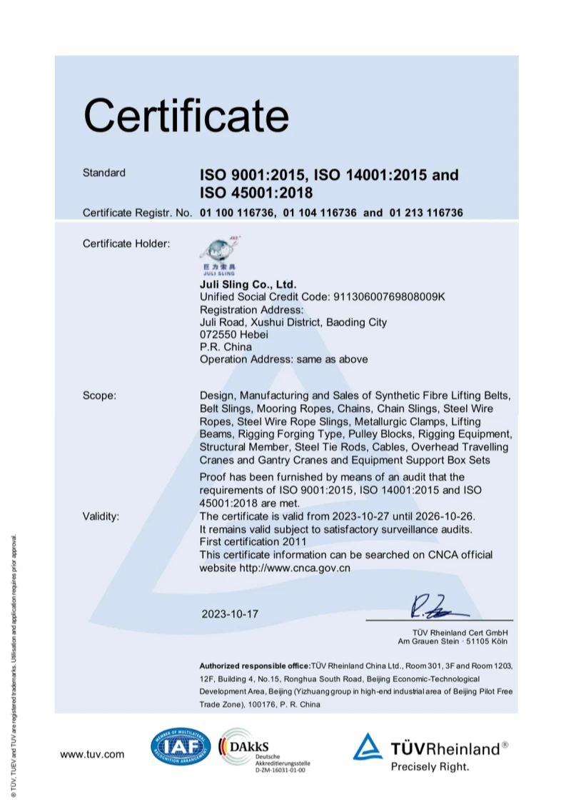 - ISO 9001 14001 45001 Certified Lifting Equipment Factory – JULI Sling